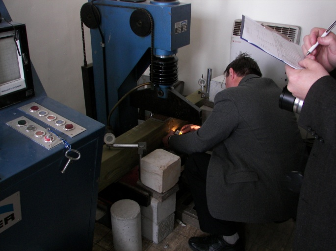 Изпитване на втвърден бетон: Якост на натиск, Якост на опътн при огъване, Якост на осов опън, Водонепропускливост, Мразоустойчивост, Плътност, Вероятна якост на натиск чрез импулсен утразвуков метод, Определяне на еластичен модул на бетона